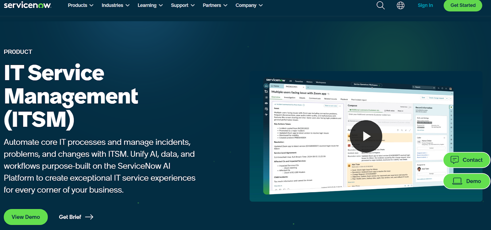 Ideal for: Organizations with complex IT environments to manage incidents, changes, requests, and configuration data through a centralized system of record.