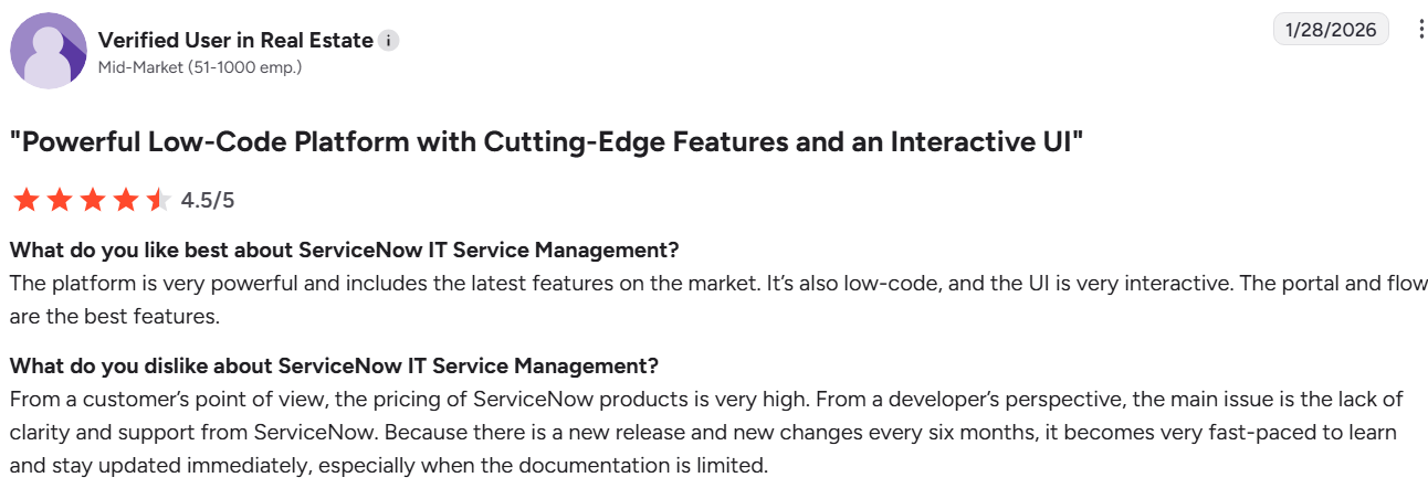 It is a long-term system of record for IT operations, for organizations that prioritize process consistency, auditability, and centralized control as they scale. However, it comes with a higher total cost of ownership and longer setup cycles, particularly for small teams.