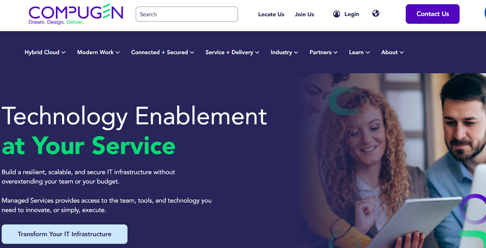 Compugen positions itself as a partner that helps organizations strengthen their IT foundations while reducing the day-to-day load on internal teams. Their services span help desk coverage, migrations, asset management, network monitoring, collaboration tools, mobility, security, and device management.